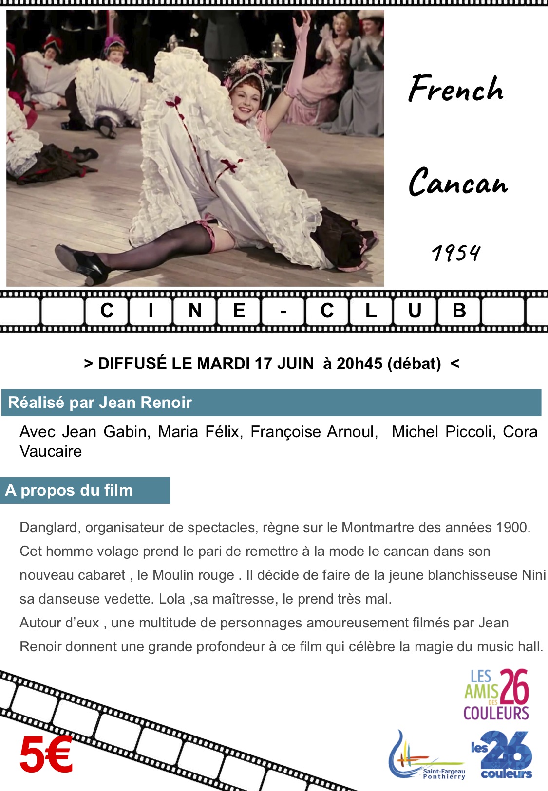 Cine club French Cancan 16 juin 2025 Hélène Couderc Ciné-club Share Pour le ciné club de juin, un petit tour sur la butte où les ailes des moulins protègent les amoureux …