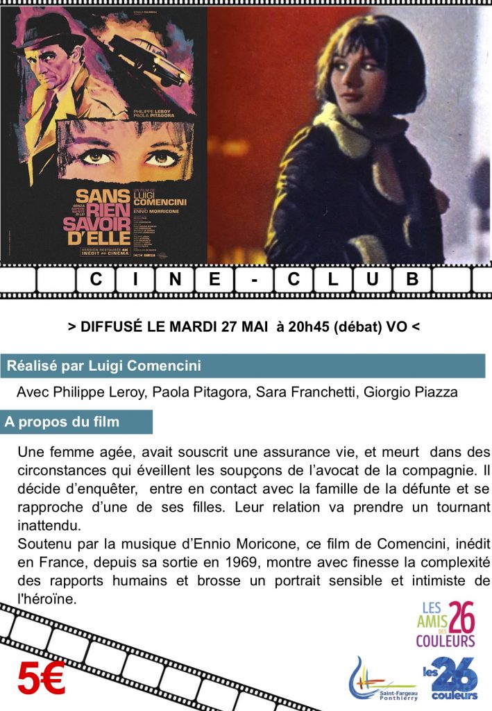 Cine club Sans rien savoir d’elle 25 mai 2025 Hélène Couderc Ciné-club Share Ce mardi au ciné club, un policier intimiste inédit de Luigi Comencini.