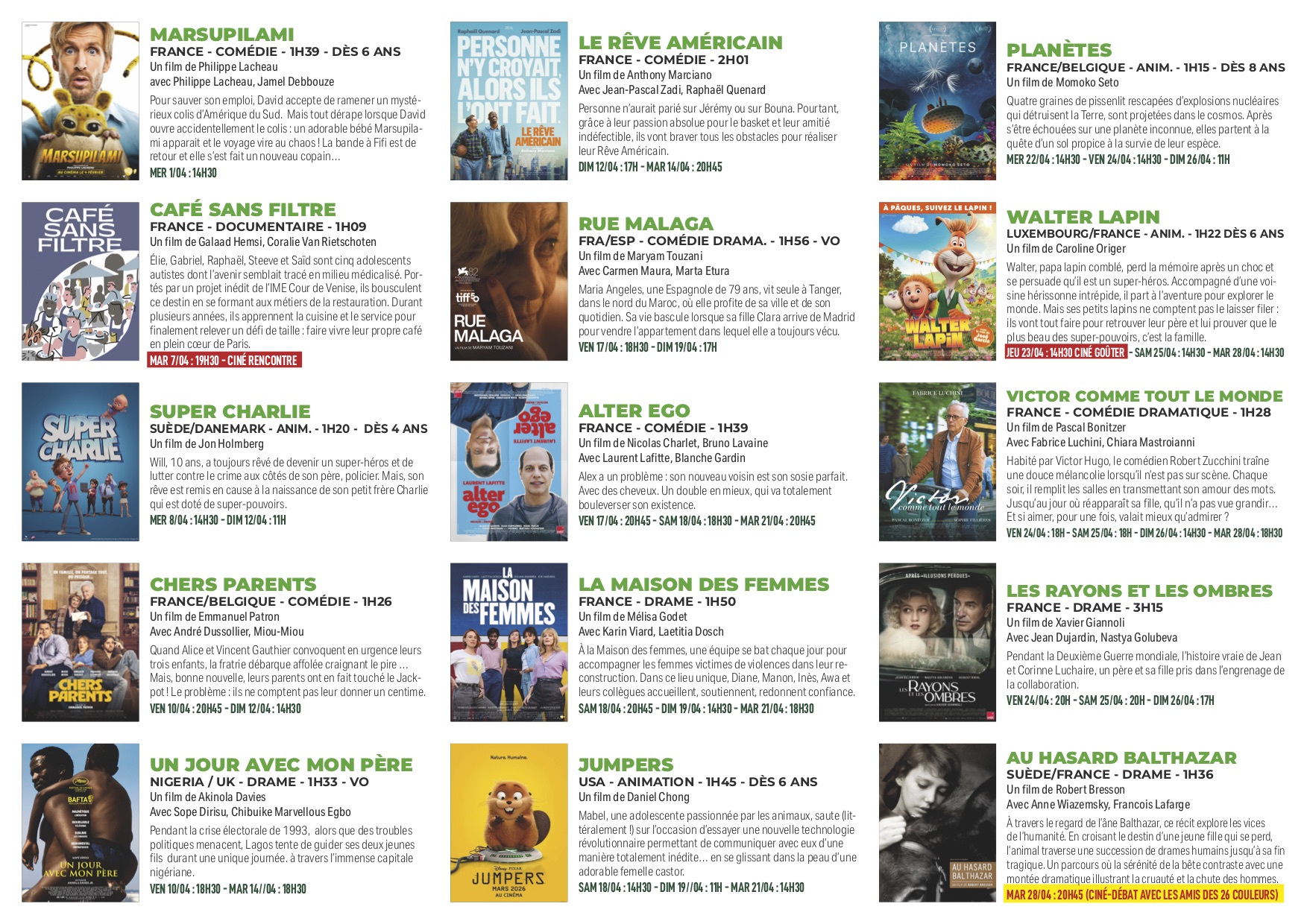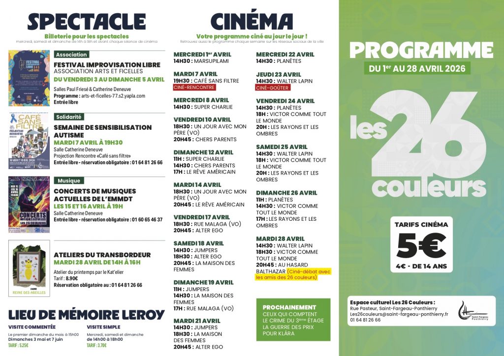 Programme du 1er au 28 avril 4 avril 2026 Hélène Couderc Le Centre Culturel, Non Classé, Programme Share